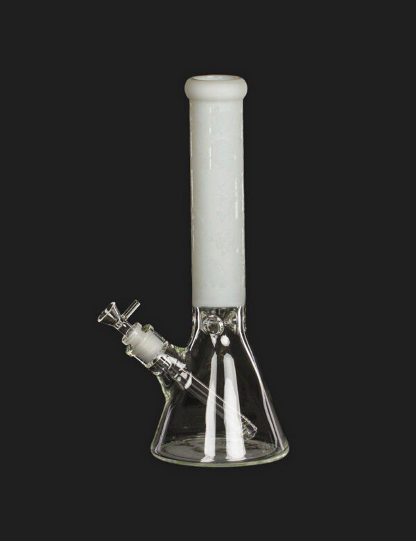 Amsterdam Beaker Mixed White Skull stikla ūdenspīpei komplektā ir 15 cm garš 14,5 mm/18,8 mm diametra adapteris un 14,5 mm diametra galviņa.