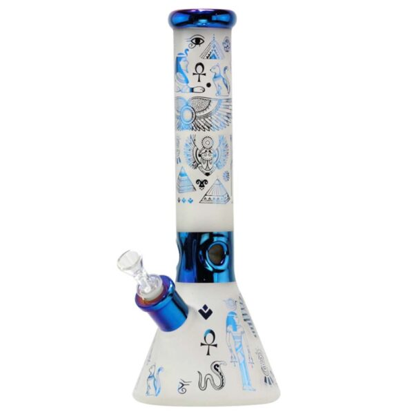 Stikla ūdenspīpe “Amsterdam Egyptian Arts” 36 cm stikla ūdenspīpei ir stikla biezums līdz 7 mm, tās 18,8 mm caurule ir aprīkota ar 14,5 mm galvu.