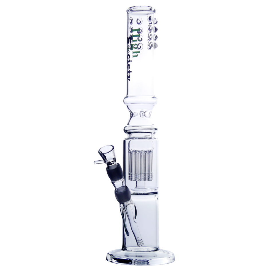 Augstās sabiedrības stikla ūdenspīpei ir 18,8 mm diametra adapteris un 18,8 mm stikla galviņa.